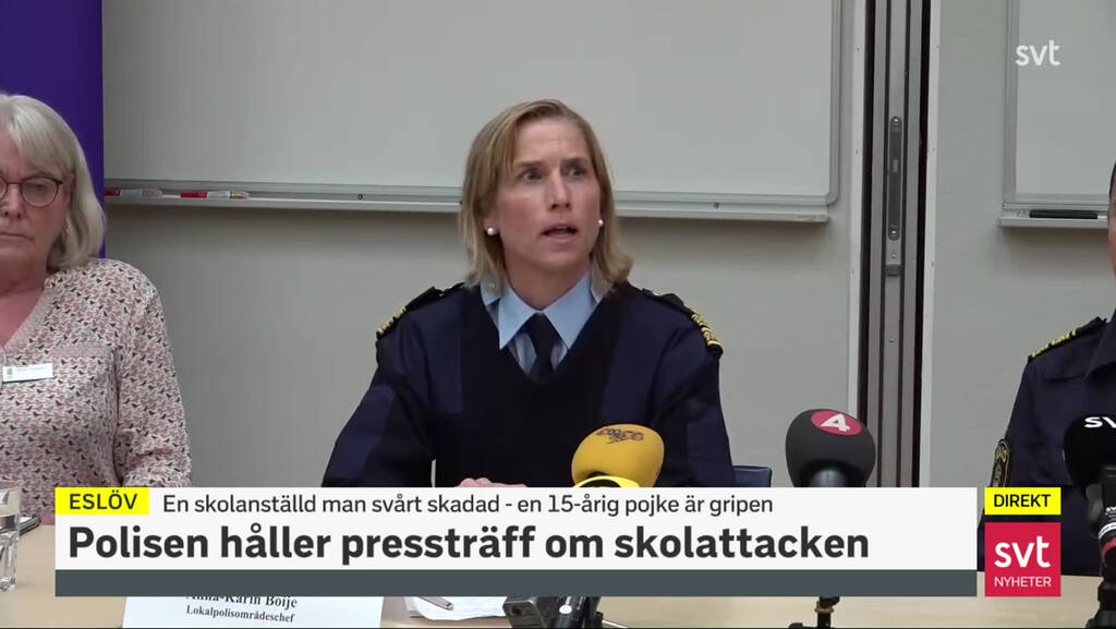 En elev er pågrepet etter en aksjon der politiet løsnet skudd. Skoleansatt skadet etter angrep i sverige. Polisen larmades på torsdagsmorgonen till en högstadieskola i eslöv då en lärare blivit attackerad av en maskerad gärningsperson inne. En elev er pågrepet etter en aksjon der. Tidigare har hans advokat sagt att han är djupt ångerfull.